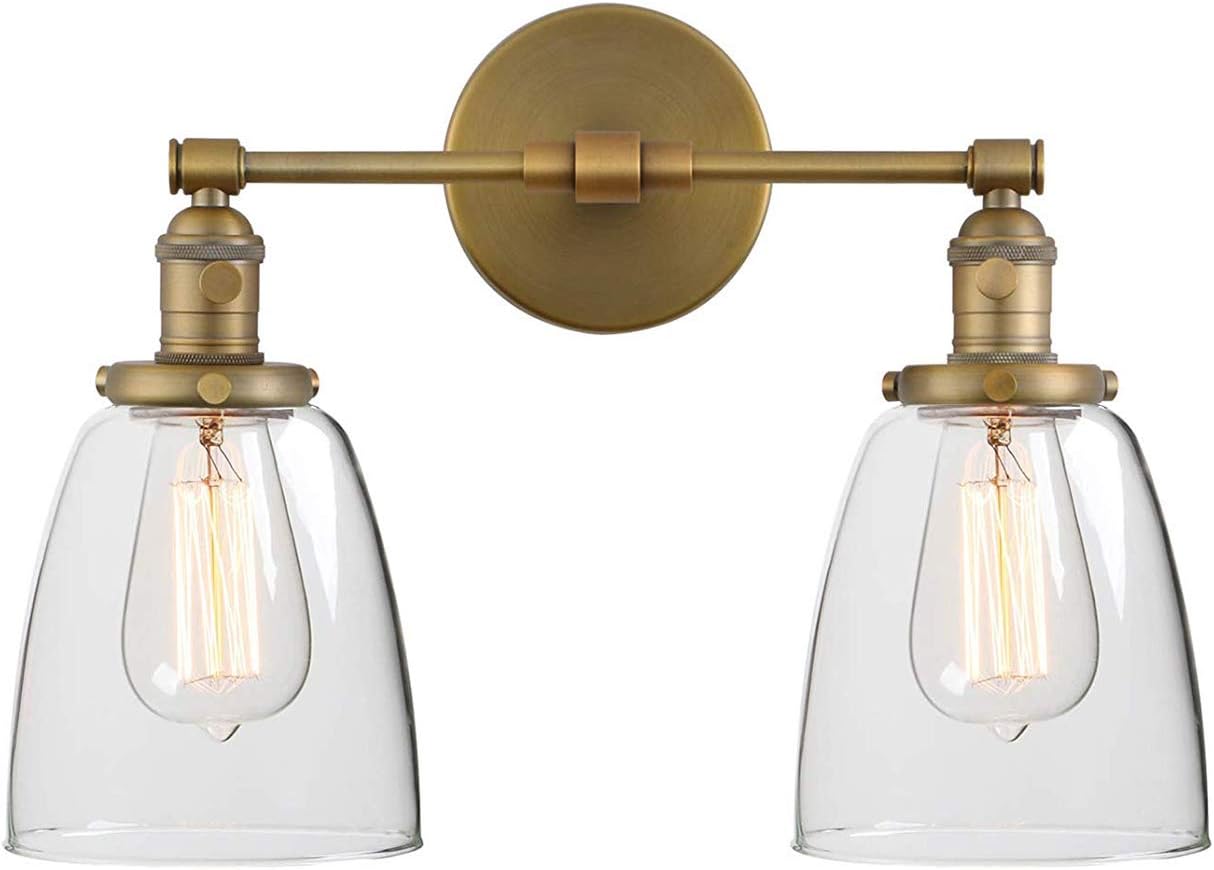 BAYCHEER Vintage 2 Lights Wall Light with Clear Glass Shade Wall Sconce Lighting Creative Vanity Lighting LED Edison Bulbs for Bathroom, Dressing Room, Bedroom Brass Finish